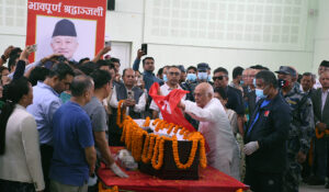 सञ्चार तथा सूचना प्रविधि मन्त्रीसमेत रहेकी शर्माका अनुसार अन्त्येष्टि हुने दिन नेपालभरका सरकारी कार्यालय, विदेशस्थित नेपाली दूतावास र नियोगहरुमा राष्ट्रिय झण्डा आधा झुकाउने निर्णयसमेत सरकारले गरेको छ ।