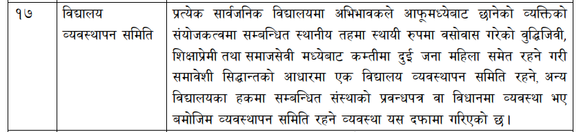 २०७२ सालमा नयाँ संविधान जारी भइसकेपछि विद्यालय शिक्षा व्यवस्थापनको जिम्मेवारी पाएका कतिपय स्थानीय तहले आफूखुसी वडाध्यक्षलाई विद्यालय व्यवस्थापन समितिको अध्यक्षमा नियुक्त गर्दै आएका थिए । खासगरी काठमाडौं महानगरपालिकाले गरेको यस्तो निर्णय विवादमा परिरहेको थियो ।