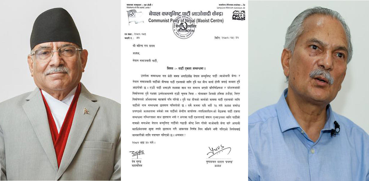 ३ असोज, काठमाडौं । नेकपा माओवादी केन्द्रले पार्टी एकताको लागि भन्दै पत्राचार गरेपछि नेपाल समाजवादी पार्टीभित्र खैलाबैला सुरु भएको छ ।