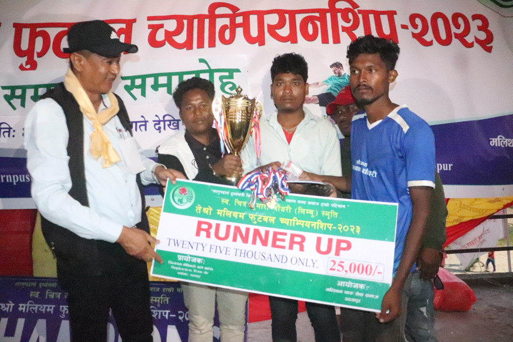 ६ कार्तिक, उदयपुर । स्व. चित्रकुमारी चौधरी (लिम्बु) स्मृति तेस्रो मलिथम फुटबल च्याम्पियनशिप– २०२३ को उपाधि लक्ष्मीपुर फुटबल क्लबले जितेको छ ।