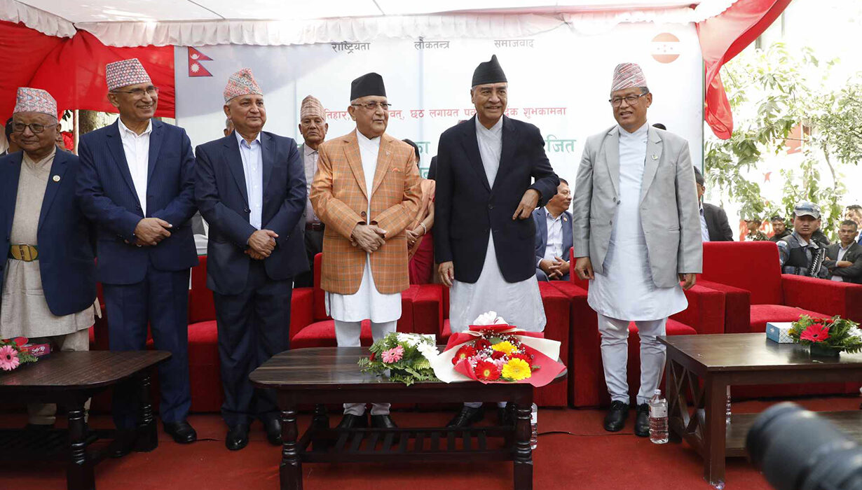 ११ कात्तिक, काठमाडौँ । नेपाली कांग्रेसले आयोजना गरेको शुभकामना आदानप्रदान तथा चियापान कार्यक्रममा नेकपा (एमाले)का शीर्ष नेताहरु सहभागी भएका छन् ।