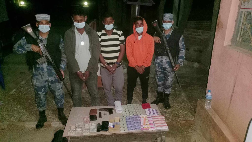 उनीहरूको साथबाट ९ एमएमको एउटा पेस्तोल, एउटा म्याग्जिन, २ थान गोली, नगद एक लाख ८४ हजार २५३ रुपैयाँ, चार थान मोबाइल सेट र विभिन्न कम्पनीको ४ लाख ६४ हजार ५ सय मूल्य बराबरको रिचार्ज कार्ड बरामद भएको डिआइजी साहले बताए ।