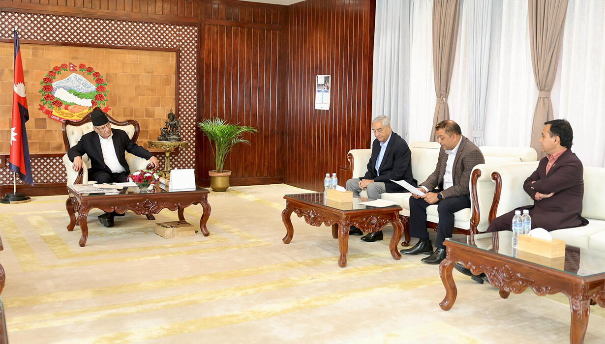आज बिहान प्रधानमन्त्री प्रचण्डलाई भेटेर सुझाव दिन नेपाली कांग्रेसका सभापति शेरबहादुर देउवा, महामन्त्रीद्वय विश्वप्रकाश शर्मा र गगन थापा, नेता मीन विश्वकर्मा र योजना आयोगका पूर्वउपाध्यक्ष डा. गोविन्द पोखरेलसहित बालुवाटारस्थित निवास पुगेका थिए ।