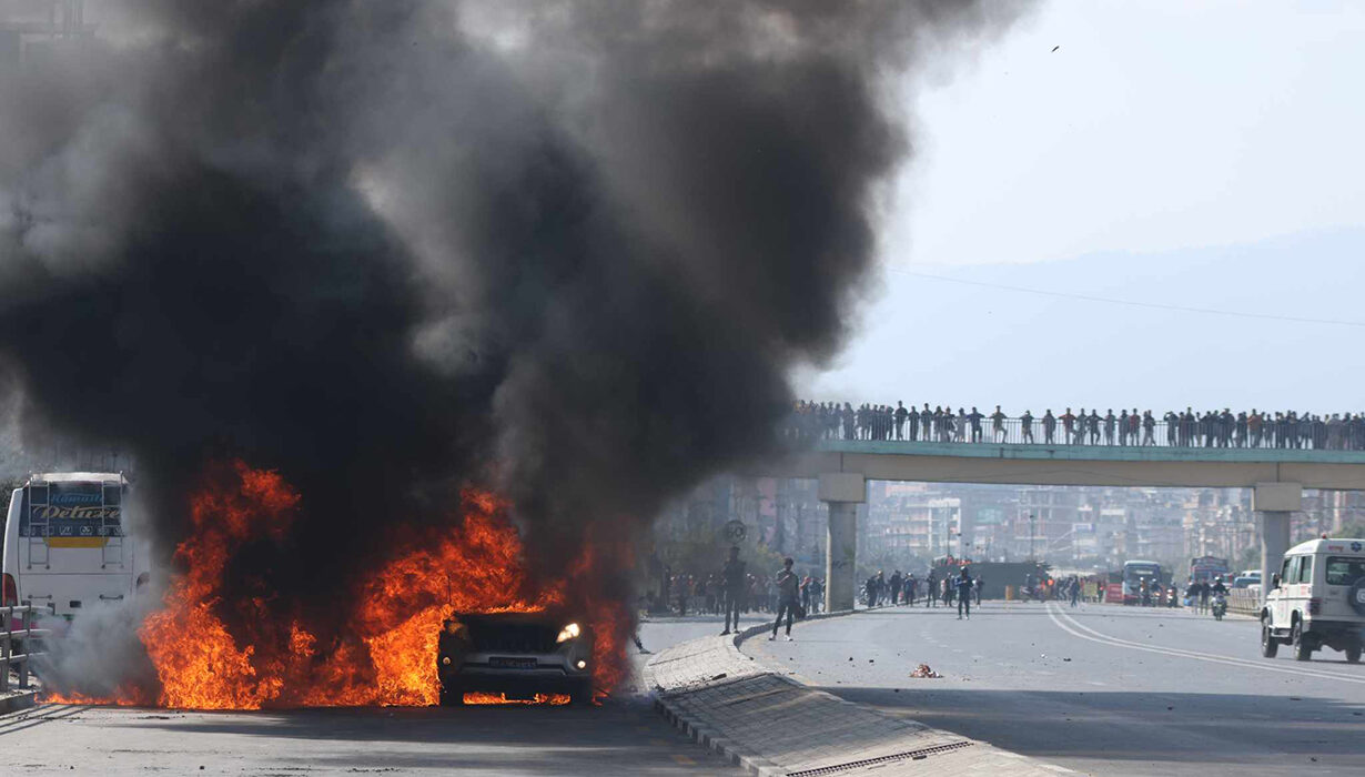 रोजगार अनुमति प्रणाली (ईपीएस) परीक्षाको विषयलाई लिएर प्रदर्शनमा उत्रिएका युवाहरूले गाडीमा आगजनी गरेका हुन् ।