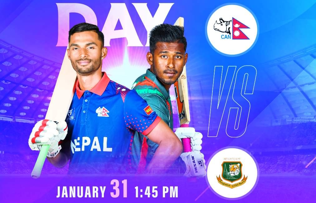 १७ माघ, काठमाडौं । दक्षिण अफ्रिकामा जारी आईसीसी यू–१९ विश्वकप २०२४ मा आज नेपालले बंगलादेशसँग खेल्दैछ । खेल नेपाली समय अनुसार दिउँसो १ : ४५ मा माङ्गाउगं ओभलमा सुरु हुनेछ ।