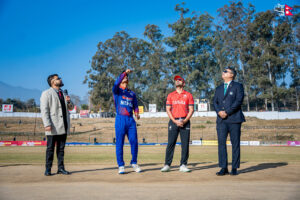 ओपनर इमरान शेख स्वीप खेल्ने क्रममा डीप स्क्वायर लेगमा शंकर रानाबाट २२ रनमा क्याच आउट भए । उनले ६६ बलमा १ चौका र १ छक्का हाने ।