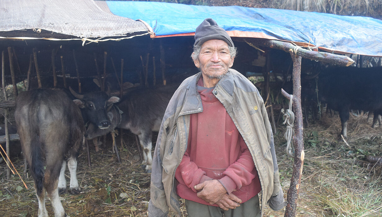 उमेरले बुढ्यौली लागेर न्यानो र आरामदायी जीवनयापन खोज्न थाले पनि उनको जिन्दगी भने भकारीले छाएका गोठमा हिमपात, वर्षा र चिसोसँग सामना गर्दै बित्ने गरेको छ ।