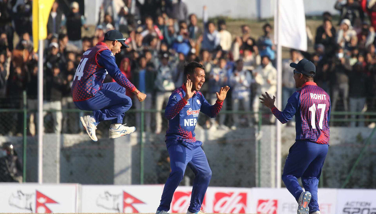 नेपालका लागि कप्तान पौडेल एक्लैले चार र ललित राजबंशीले दुई विकेट लिए । त्यसैगरी सोमपाल कामी, रिजन ढकाल, पवन शर्राफ र कुशल मल्लले समान एक÷एक विकेट लिए ।