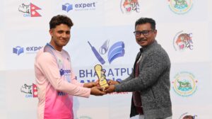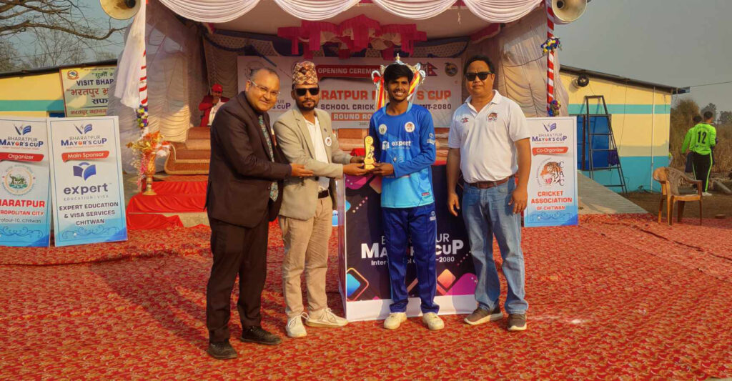 ४ फागुन, चितवन । एक्सपर्ट भरतपुर मेयर्स कप अन्तरविद्यालय क्रिकेट प्रतियोगिताको लिग चरणको खेल आज (शुक्रबार)बाट सुरु भएको छ । उद्घाटन खेलमा नारायणी नमुना मा.वि.ले अंकुरम एकेडेमीलाई ९३ रनको फराकिलो अन्तरमा हराउँदै विजयी सुरुआत गरेको छ । समूह ‘ए’ अन्तर्गतको पहिलो खेलमा अंकुरम एकेडेमीलाई पराजित गर्दै नारायणीले २ अंक सुरक्षित गरेको छ ।