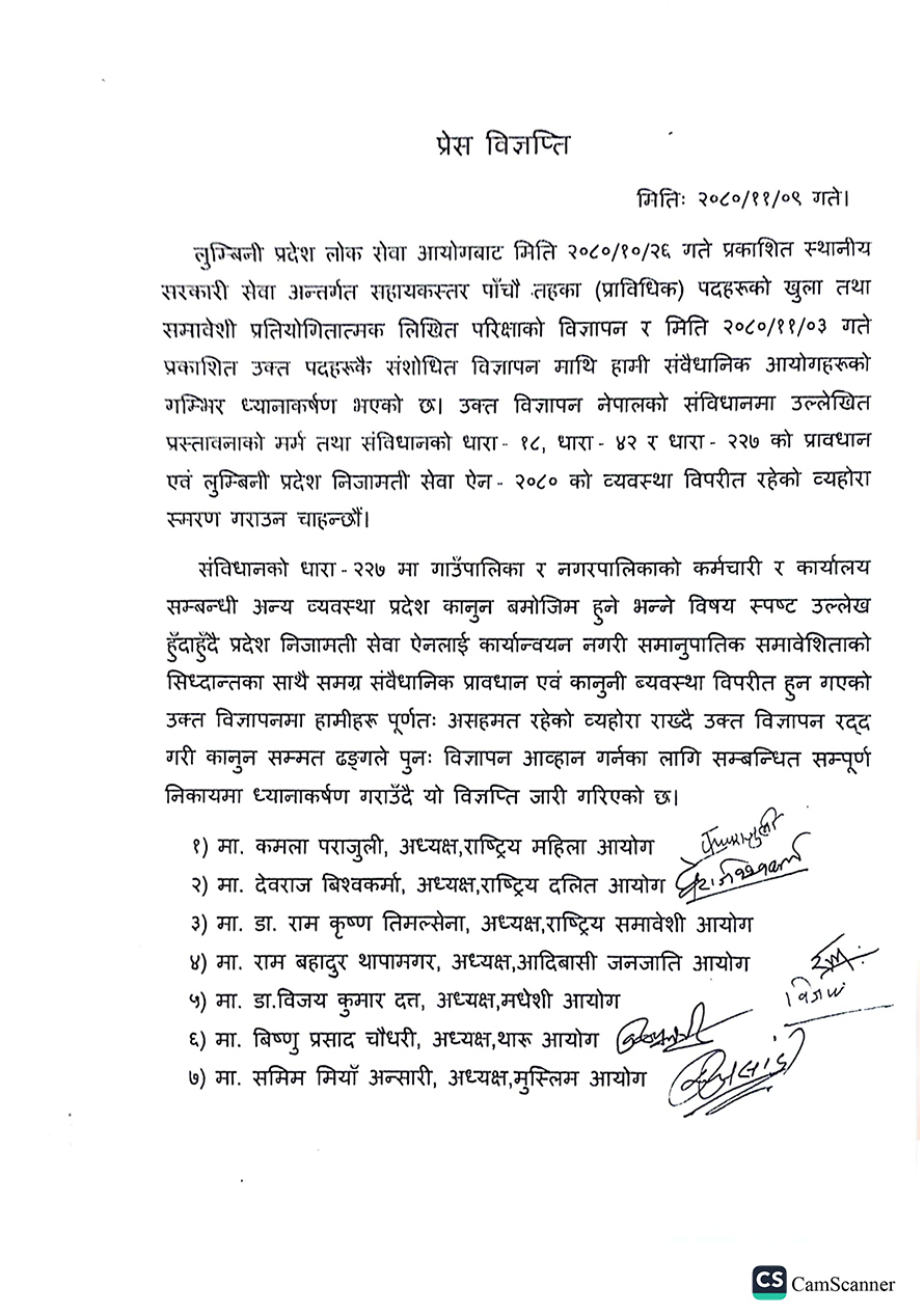 हेर्नुहोस् सात वटा समावेशी आयोगले निकालेको संयुक्त विज्ञप्ति :