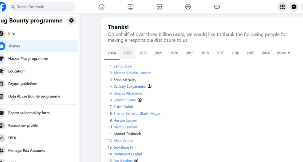 उनी भन्छन्, ‘सन् २०२४मा म नै फेसबुकको ह्वाइट ह्याकरको पहिलो र्‍याङ्कमा छु। तर मभन्दा पनि बढी स्कोर ल्‍याउने व्यक्ति पहिलो स्थानमा हुनसक्छ।’