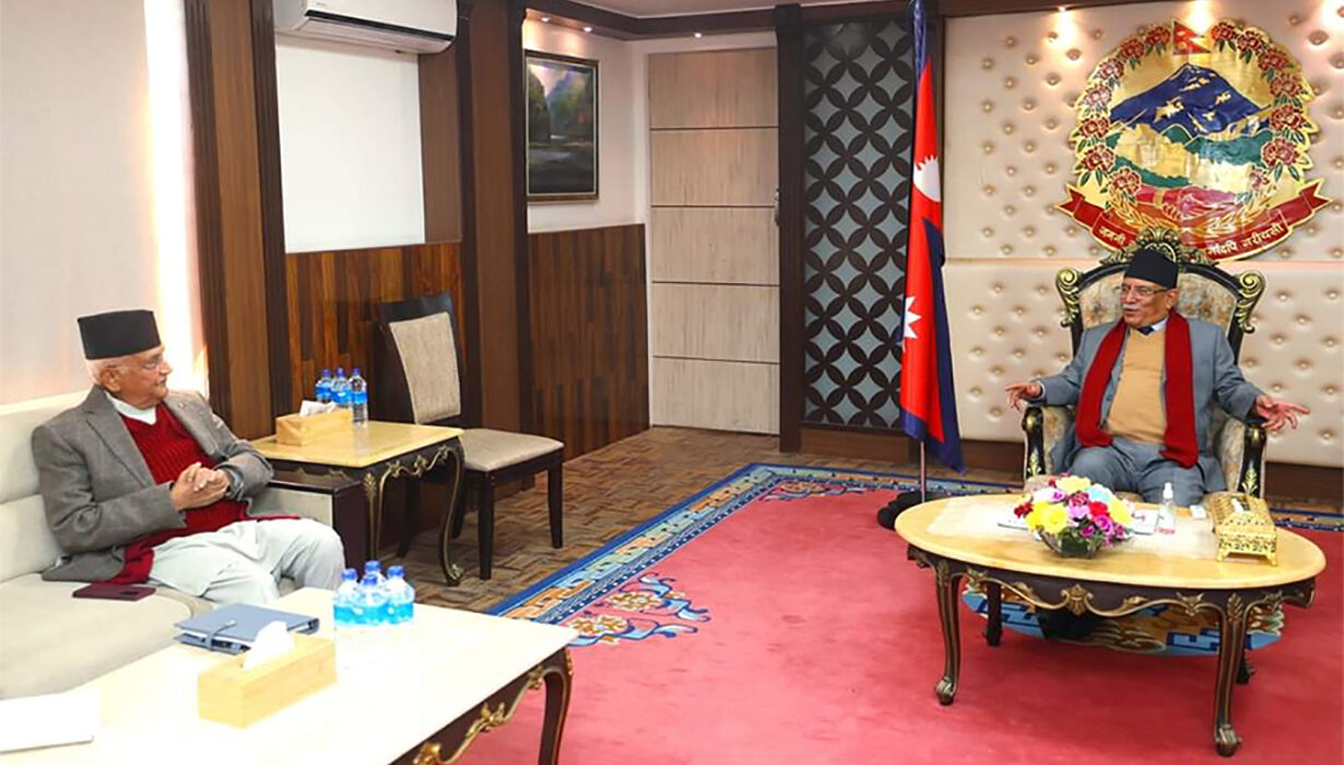 आइतबार बिहान प्रधानमन्त्री पुष्पकमल दाहाल प्रचण्डसँग भेटवार्ता गरेका अध्यक्ष ओली साँझ फेरि बालुवाटार पुगेका हुन् ।
