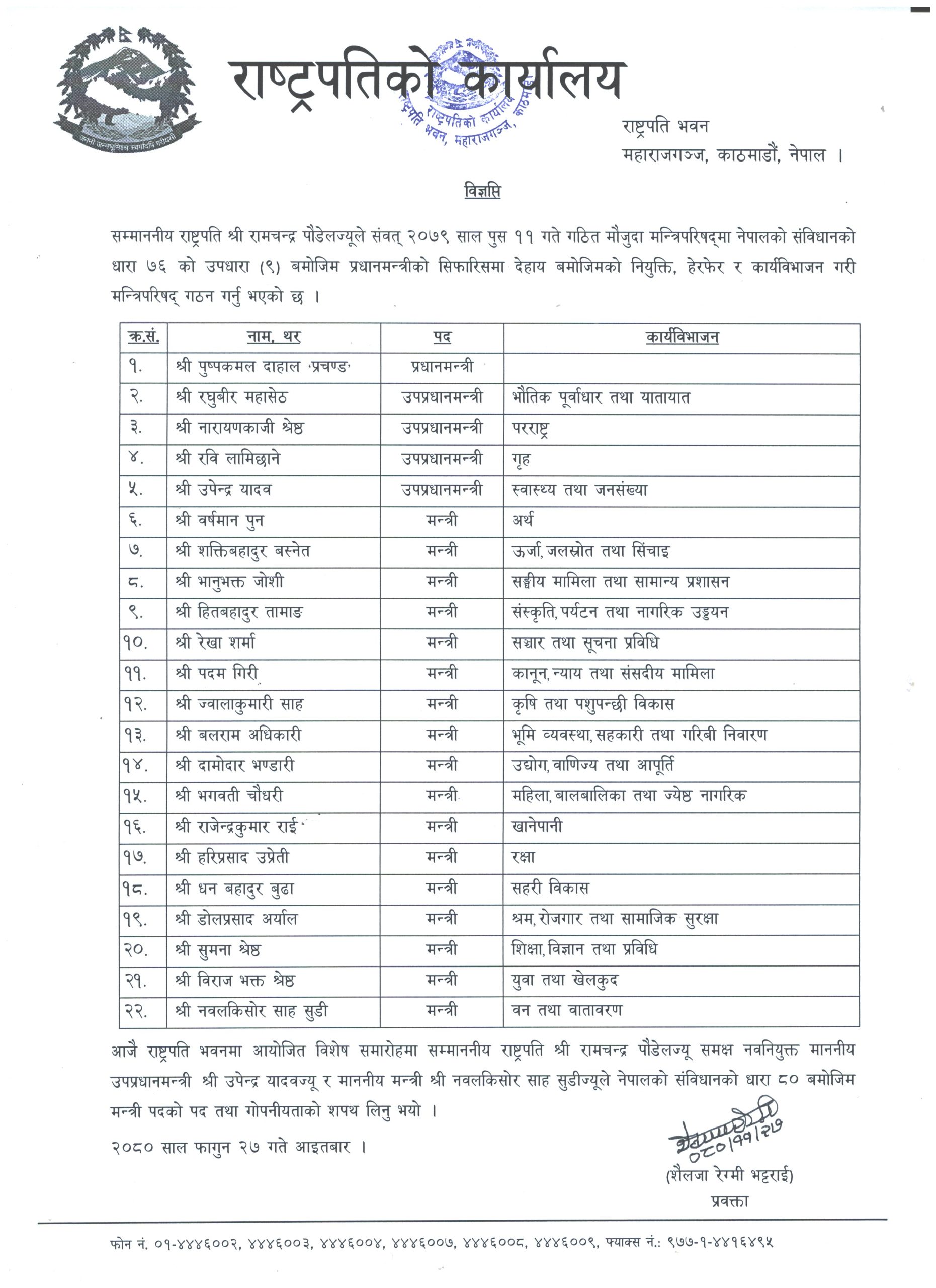 हेर्नुहोस् प्रचण्ड मन्त्रिपरिषदका सदस्यहरू :