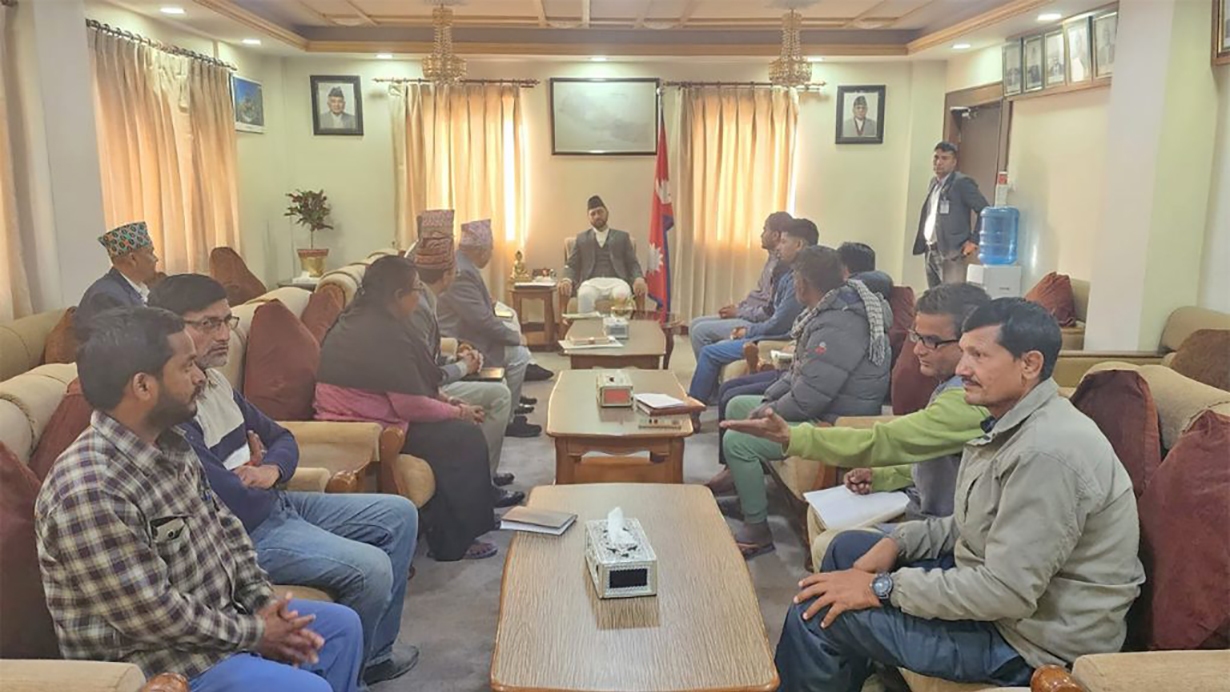 ‘लामो समयदेखि उहाँहरु प्रदर्शनमा रहनुभएकाले मन्त्रीज्यू आफैंले उहाँहरुको कुरा सुन्न बोलाउनुभएको हो’, सचिवालयका एक सदस्यले भने, ‘मन्त्रीज्यूले उहाँहरुको ६ बुँदे माग सुनिसक्नुभएको छ, फेरि केहीबेरमा दोस्रो चरणको छलफल हुँदैछ ।’