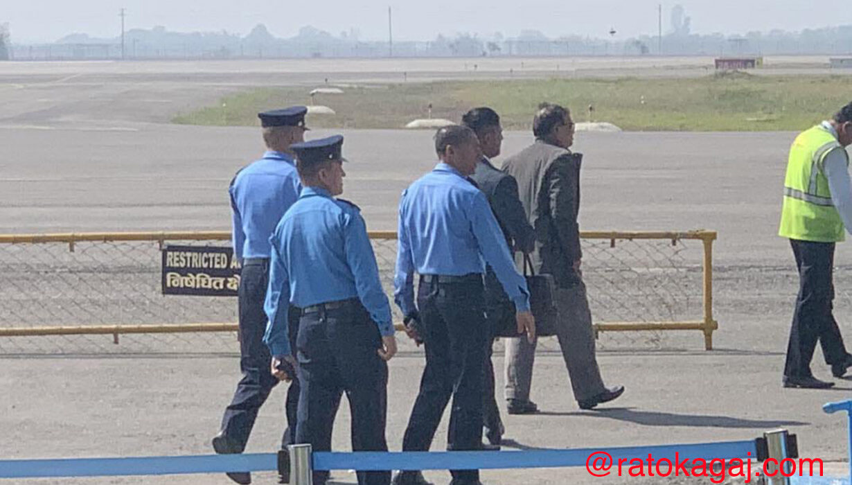 उनलाई यति एअरलाइन्सको विमानबाट काठमाडौं ल्याइएको प्रहरीको केन्द्रीय प्रवक्ता एवं प्रहरी नायव महानिरीक्षक भीमप्रसाद ढकालले जानकारी दिए । उनलाई सोमबार बिहान कपिलवस्तुबाट पक्राउ गरिएको थियो ।