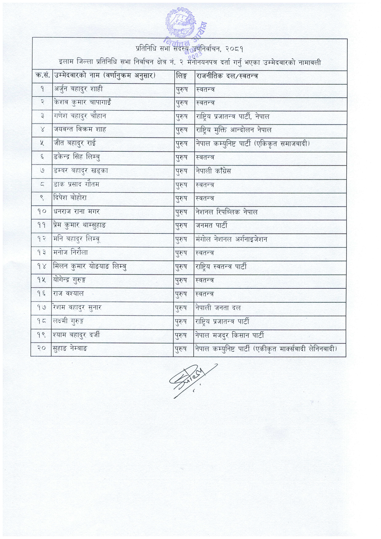 हेर्नुहोस् इलाम-२ मा मनोनयन गरेका व्यक्तिहरूको नामावली :