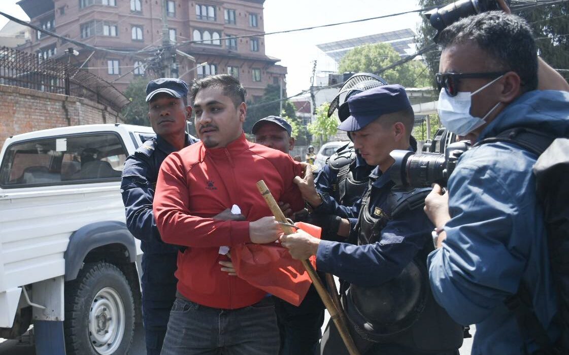 २५ चैत, काठमाडौं । प्रमुख प्रतिपक्षी दल नेपाली कांग्रेसको विद्यार्थी संगठन नेविसंघले सरकारविरुद्ध सिंहदरबार दक्षिण गेट अगाडि प्रदर्शन गरेको छ । बिहान कार्यालय समय सुरु हुनासाथ गरिएको प्रदर्शन गर्ने ६ जनालाई प्रहरीले पक्राउ गरेको छ ।