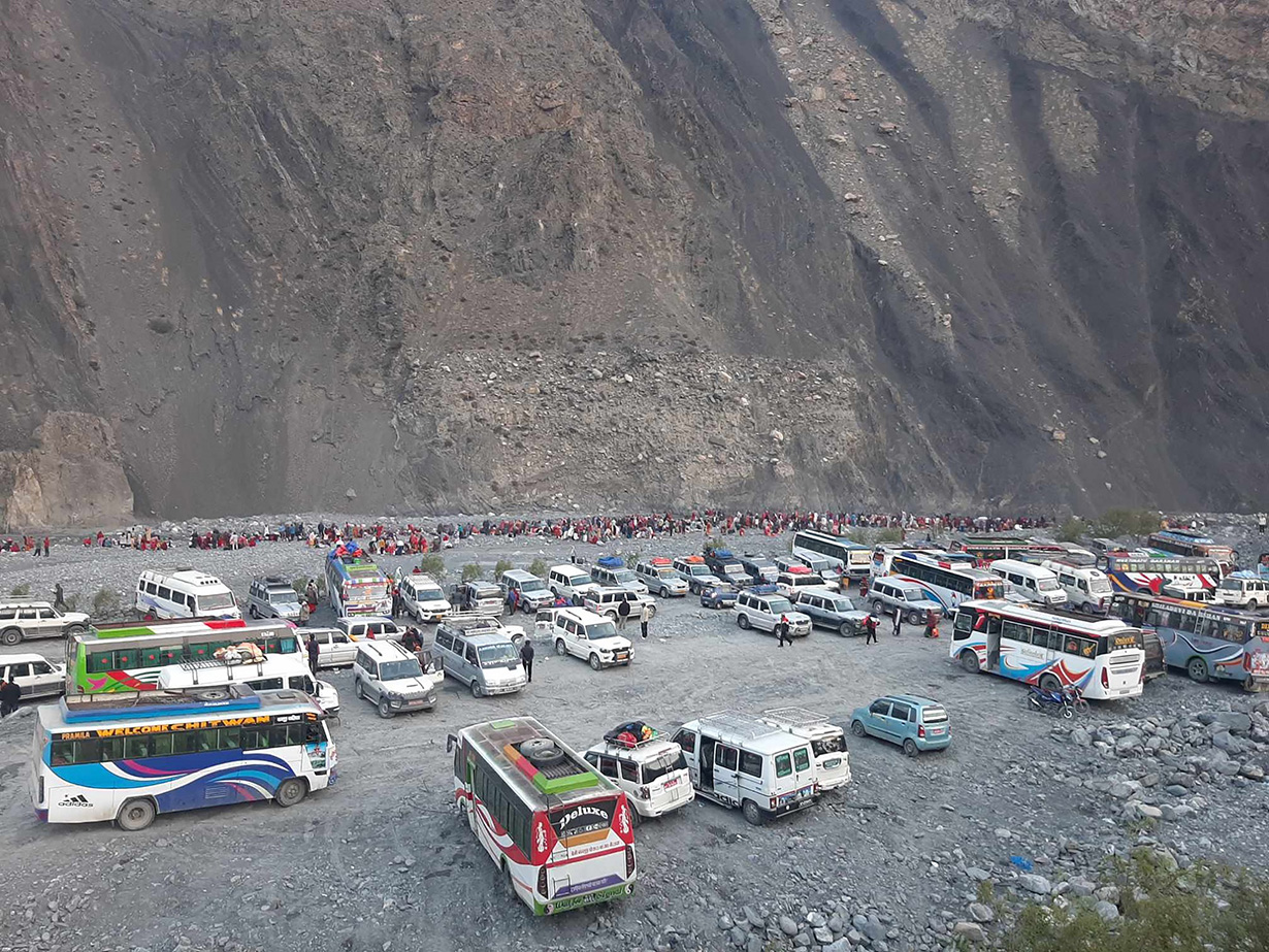 जिल्ला प्रहरी कार्यालय मुस्ताङका अनुसार आइतबार एक हजार दुई सय सात वटा गाडीमा ११ हजार एक सय ९२ नेपाली र तीन सय ४७ जना विदेशी, शनिबार चार सय ३७ वटा गाडीमा तीन हजार पाँच सय २७ नेपाली र चार सय ५६ विदेशी पर्यटक भित्रिएका थिए । शनिबार र आइतबार मुस्ताङ भित्रिएकामध्ये अधिकांश कागबेनीमा पिण्डदान र मुक्तिनाथ दर्शन गर्ने भक्तजन रहेका प्रहरी नायब उपरीक्षक भोजराज पाण्डेले बताए।
