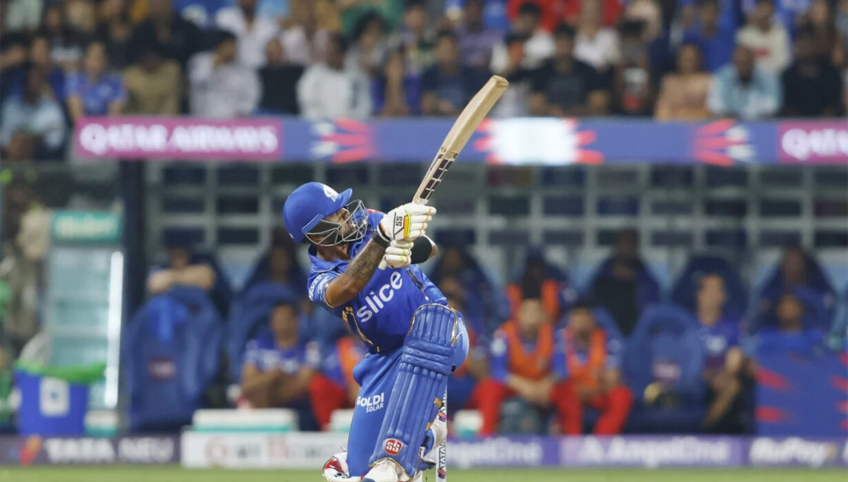 सूर्यकुमार यादवले १९ बलमा ५ चौका र ४ छक्कासहित ५२ रनको आक्रामक क्रिकेट खेल्दै पुनरागमन गरे । रोहित शर्मा २४ बलमा ३ चौका र ३ छक्कासहित ३८, हार्दिक पान्ड्या २१ र तिलक बर्मा १६ रन बनाए । बेंगलोरका आकाश दीप, विजयकुमार वैश्यक र विल ज्याक्सले १/१ विकेट लिए ।