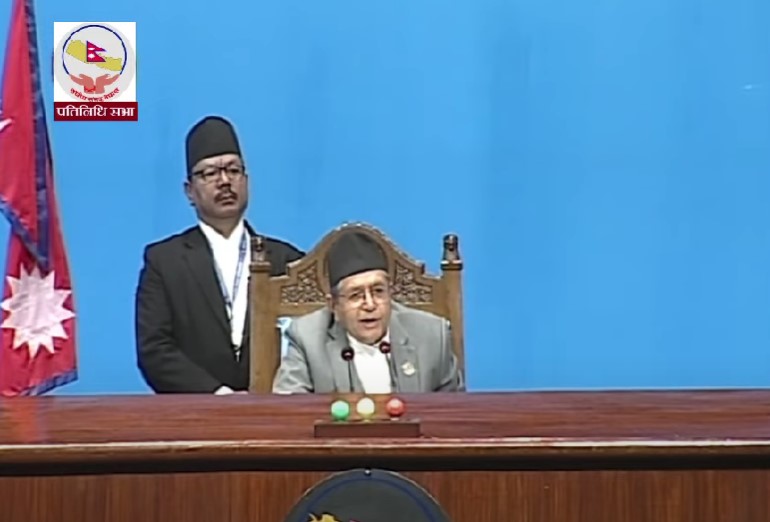 सभामुखले भने–‘माननीय सदस्यहरूलाई अहिले भर्खर मात्र भएको कार्यव्यवस्था परामर्श समितिको बैठकले गरेको निर्णय र त्यहाँ भएका समझदारीको बारेमा ध्यान आकर्षण गर्न चाहन्छु । आज हामी जरुरी विषयमा मात्र प्रवेश गर्ने कुरामा यहाँहरू जानकार हुनुहुन्छ । त्यहाँ हुँदा एउटा कुरा गर्ने, सदनमा आएर अर्को कुरा गर्ने हामी कस्तो खालको परिपाटीको विकास गर्छौँ ? त्यसले गर्दा यस्तो गलत परिपाटीको विकास गर्न हामी उद्धत नहोऊँ । जे समझदारी भएको छ त्यही अनुसार अगाडि बढौँ । त्यसका लागि आसनग्रहण गर्न आग्रह गर्दछु ।’