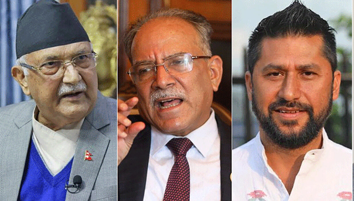 ६ वैशाख, काठमाडौं । प्रधानमन्त्री पुष्पकमल दाहाल प्रचण्ड, नेकपा एमालेका अध्यक्ष केपी शर्मा ओली र राष्ट्रिय स्वतन्त्र पार्टीका सभापति रवि लामिछानेबीच सिंहदबारमा भेटवार्ता भएको छ ।
