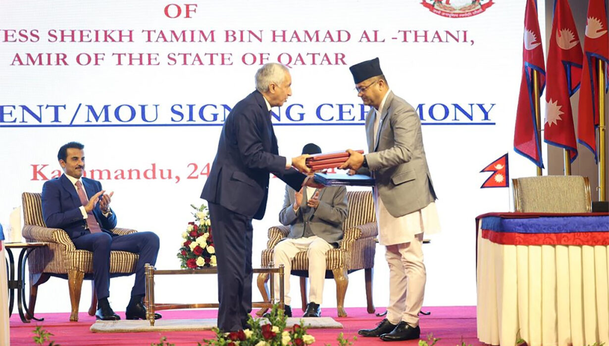 १२ वैशाख, काठमाडौं । नेपाल र कतारबीच द्विपक्षीय लगानी र सहकार्यसँग सम्बन्धित समझदारी तथा सम्झौतामा हस्ताक्षर भएको छ ।