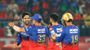 त्यसअघि टस जितेर पहिला ब्याटिङ रोजेको बेंगलोरले २० ओभरमा ७ विकेट गुमाउँदै २०६ रन बनायो । बेंगलोरका रजत पाटीदारले २० बलमा २ चौका र ५ छक्कासहित सर्वाधिक ५० रन बनाए ।
