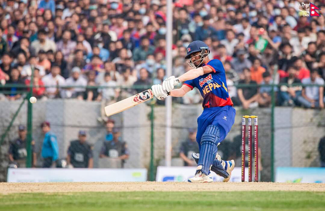 १५ वैशाख, काठमाडौं । वेष्टइण्डिज ए विरुद्धको टी-२० खेलमा नेपालमा कप्तान रोहित पौडेलले शतक पूरा गरेका छन् ।