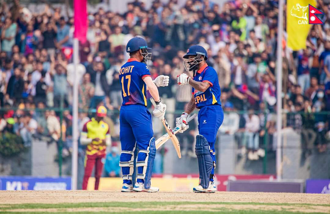 १५ वैशाख, काठमाडौं । कप्तान रोहित पौडेलको शतकमा नेपालले पहिलो टी२० खेलमा वेस्टइन्डिज ए लाई ४ विकेटले हराएको छ ।