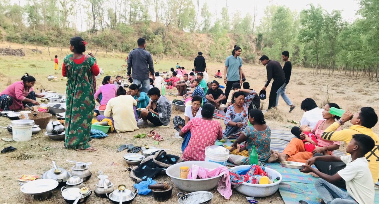 २३ वैशाख, कैलाली । शनिबार कैलालीको भजनी नगरपालिका–९ पचमुडियाका एक सय ७४ थारु समुदायका घर परिवार बिहानैदेखि खुला चौरमा गई बसे । लहरै खाना पकाउनका लागि चुलो बनाइएको छ भने खाने कुरा पनि राखिएका थिए । बिहानै गएका उनीहरु बेलुका अबेर घर फर्कीए ।
