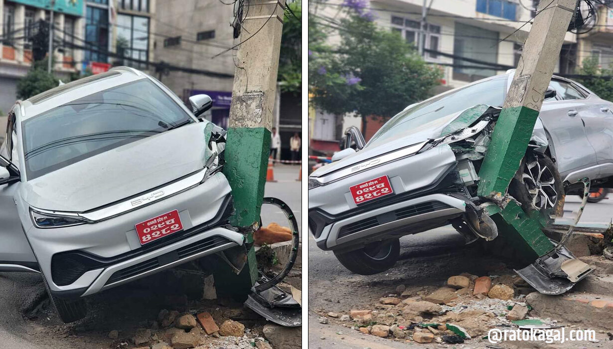 आज बिहान साढे ५ बजे बागमती प्रदेश ०१-०२९ च ४२८२ नम्बरको कार सडकमा अनियन्त्रित भई छेउको विद्युत पोलमा ठोक्किएको हो ।