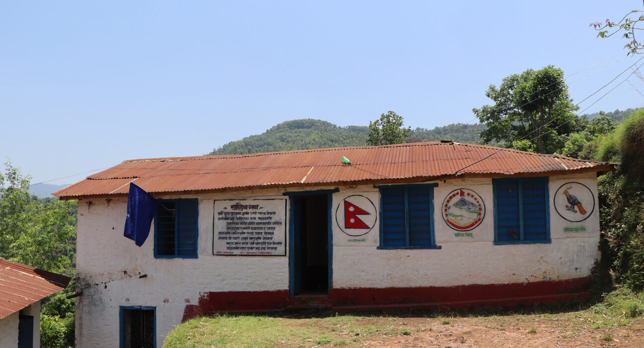 ४ जेठ, बागलुङ सुनसान गाउँ, वरपर केही घर, चारैतिर बढ्दै गरेको झाडी । त्यही झाडी छेउमा दुई जीर्ण भवन छन् । खिया लागेका जस्ताले छाएको छानो । मक्किएका झ्याल ढोका । लेखिएको भित्ते लेखन र झ्यालमा अड्याएर राखिएको झन्डामा यहाँ पुग्ने हरेकको नजर ठक्क रोकिन्छ ।