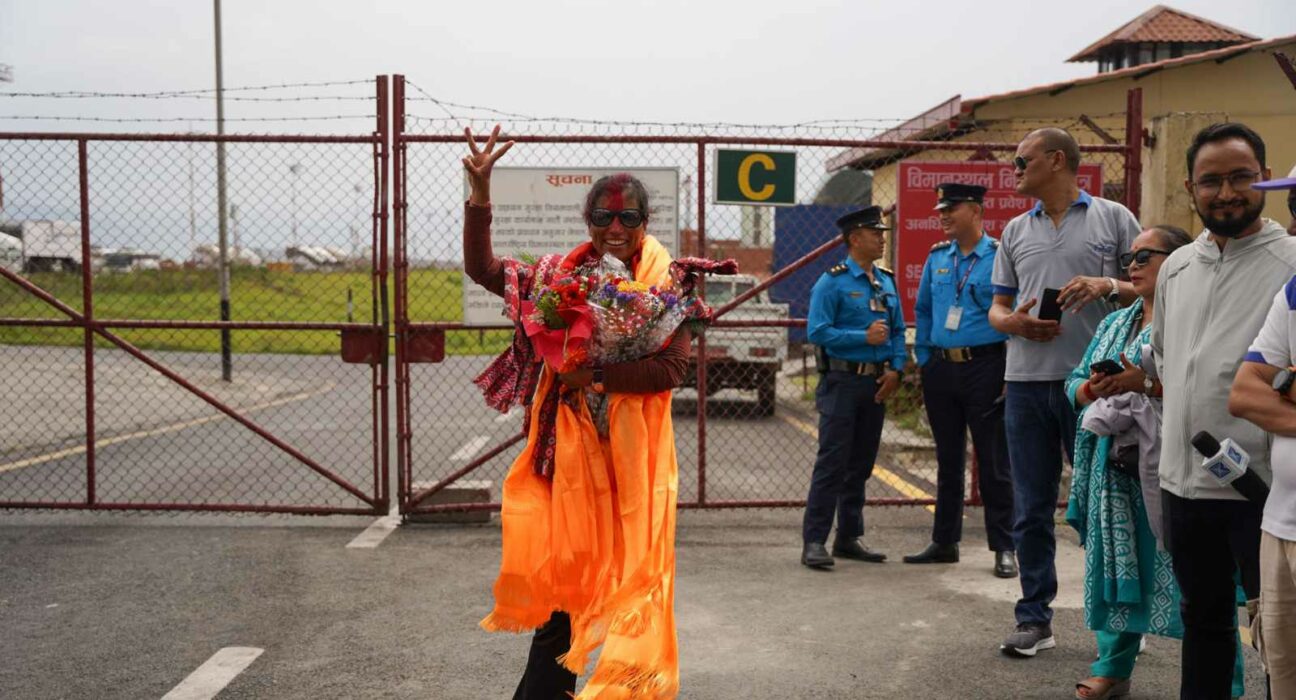 एकै मौसममा ३ पटक सगरमाथा आरोहण गरी फर्किएकी पूर्णिमालाई विमानस्थलमा स्वागत