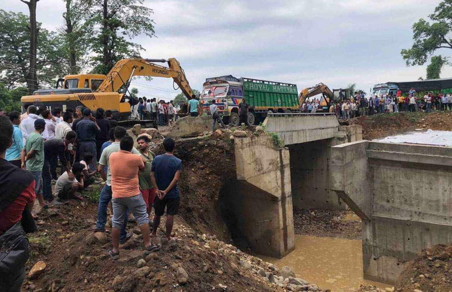 १५ जेठ, नवलपरासी । पूर्वपश्चिम राजमार्गको नारायणगढ–बुटवल सडकखण्डअन्तर्गत नवलपरासी (बर्दघाट–सुस्तापूर्व) मा सडक भासिँदा राजमार्ग अवरुद्ध भएको छ । सोमबार साँझदेखि परेको वर्षाका कारणका गए राति २ बजेको समयमा गैँडाकोट–९ थुम्सीको जङ्गलमा सडक भासिँदा पूर्वपश्चिम राजमार्ग अवरुद्ध भएको हो ।