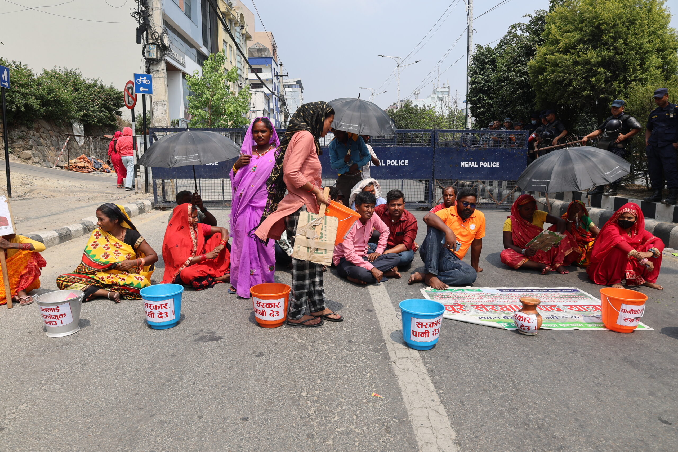 ३२ जेठ, काठमाडौं । तराई-मधेशमा पानी माग्दै बानेश्वरको बीच सडकमा रित्ता भाँडासहित मधेशवासीहरूले शुक्रबार पनि प्रदर्शन गरेका छन् ।