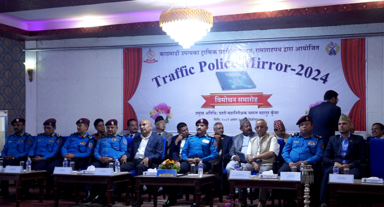 काठमाडौँ उपत्यका ट्राफिक प्रहरी कार्यालयद्वारा बिहीबार आयोजित कार्यक्रममा प्रहरी महानिरीक्षक वसन्तबहादुर कुँवरले ‘ट्राफिक पुलिस मिरर’ सार्वजनिक गरेका हुन् ।