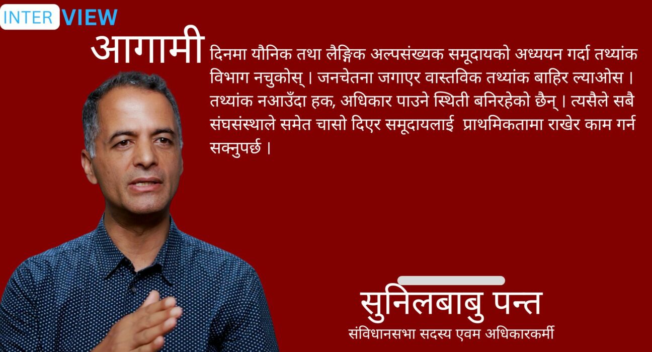 (यौनिक तथा लैङ्गिक अल्पसंख्या समूदायबाट संविधान सभा सदस्य बनिसकेका सुनिलबाबु पन्तसँग कुराकानीमा आधारित । उनी मायाको पहिचान नेपाल संस्थाको कार्यकारी निर्देशक समेत हुन् )