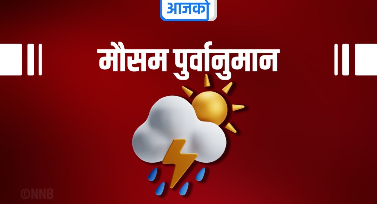 आज दिउँसो देशभर आंशिकदेखि साधारणतया बदली रहने छ । बागमती, कोशी, गण्डकी, कर्णाली, लुम्बिनी र सुदूरपश्चिम प्रदेशका केही स्थान बाँकी प्रदेशका थोरै स्थानमा मेघगर्जन र चट्याङसहित हल्कादेखि मध्यम वर्षाको सम्भावना छ ।