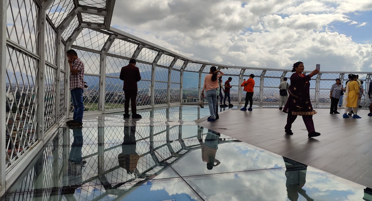 १६ साउन, काठमाडौं । सिसामाथि हिँड्ने साहसिक मज्जा लिनका लागि काठमाडौंको कमलादीमा संचालन भएको स्काई वाक टावर संचालनमा आएको एक वर्ष भयो ।