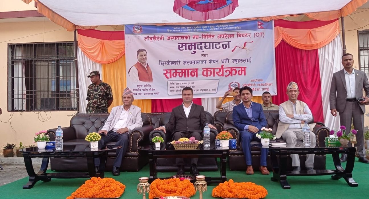आँबुखैरेनी–३ मा निजी क्षेत्रबाट सञ्चालित छिम्केश्वरी अस्पताल आँबुखैरेनी अस्पतालमा समायोजन भएको थियो । यसैबीच स्वास्थ्य तथा जनसङ्ख्यामन्त्री पौडेलले जनताले सहज रूपमा स्वास्थ्य सेवा पाउने वातावरण सिर्जना गर्न सरकार प्रतिबद्ध रहेको बताएको छ । नेपाली कांग्रेस ऑबुखैरेनी गाउँ कार्यसमितिले आज यहॉ आयोजना गरेको स्वागत एवं सम्मान कार्यक्रममा उहाँले स्वास्थ्य संस्था सुधारका लागि आफू कार्ययोजनासहित अगाडि बढेको जानकारी दिए । उसले भने, “तनहुँको सन्दर्भमा जिपी कोइराला अस्पताल, दमौली अस्पताल तथा पालिकास्तरीय अस्पतालको विकासका लागि म जानकार छु ।”