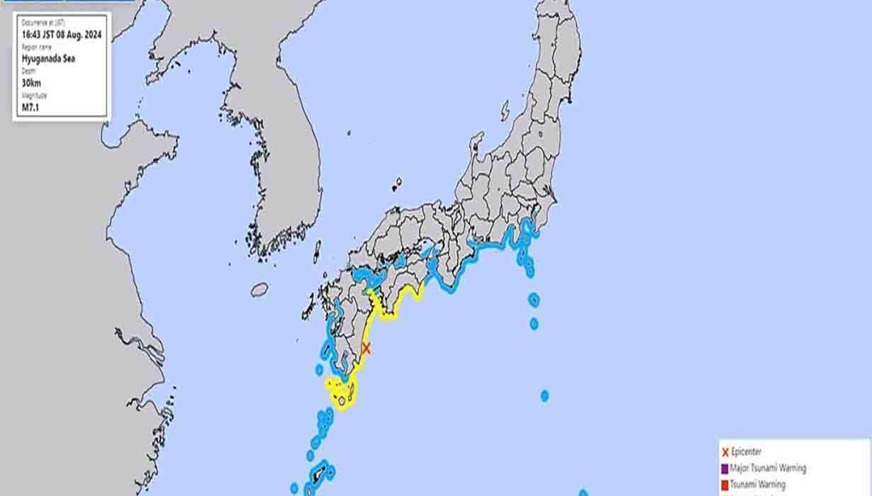 भूकम्पको केन्द्र दक्षिणपश्चिम क्षेत्रको मियाजाकी प्रान्तमा थियो । भूकम्पको कारण मियाजाकी र कोची प्रान्तमा सुनामी आउने सम्भावना रहेको अधिकारीहरुको भनाइ छ ।