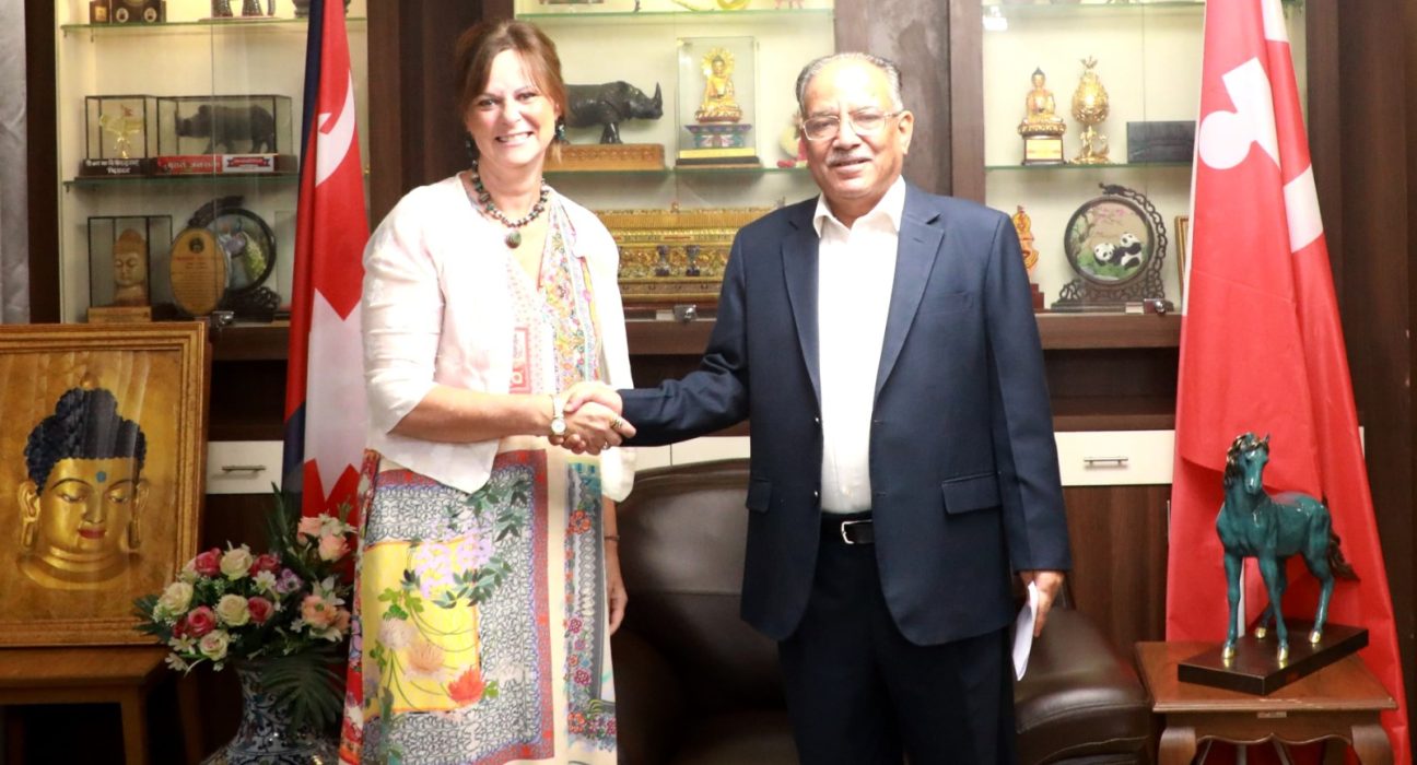 ३० साउन, काठमाडौँ । नेपालका लागि अष्ट्रेलियाका राजदूत फेलिसिटी भोल्कले नेपाल कम्युनिष्ट पार्टी (माओवादी केन्द्र)का अध्यक्ष एवं पूर्वप्रधानमन्त्री पुष्पकमल दाहाल ‘प्रचण्ड’सँग बिदाइ भेट गरेको छ ।