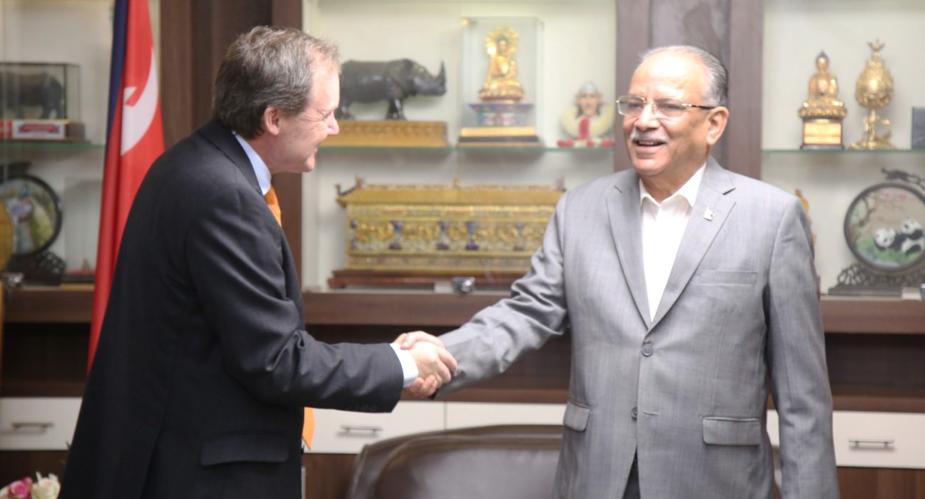 ३२ साउन, काठमाडौँ । नेपाल कम्युनिस्ट पार्टी (माओवादी केन्द्र) का अध्यक्ष पुष्पकमल दाहाल ‘प्रचण्ड’सँग नेपालका लागि संयुक्त अधिराज्य बेलायतका राजदूत रोब फेनले भेट गरेका छन् । ललितपुरको खुमलटारस्थित निवासमा आज भएको भेटमा अध्यक्ष दाहालले नेपालको प्रतिनिधिसभाले पीडितमैत्री न्यायमा जोड दिँदै सङ्क्रमणकालीन न्यायसम्बन्धी विधेयक पारित गरेको जानकारी गराउँदै पीडितमैत्री न्याय र सम्मानका लागि आवश्यक सहयोगमा बेलायत सरकारको साथ रहने विश्वास व्यक्त गरे ।