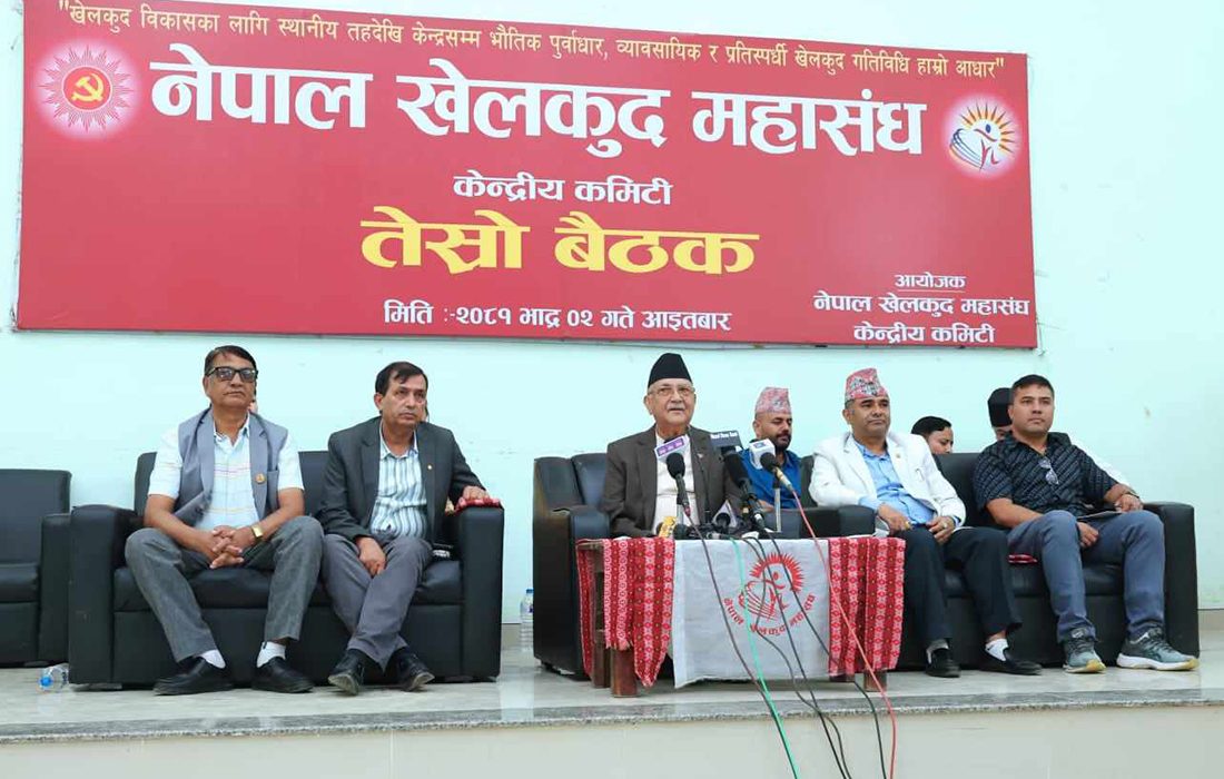 २ भाद्र, काठमाडौं । प्रधानमन्त्री केपी शर्मा ओलीले देशको प्रणाली उपयुक्त छ/छैन भनेर छलफल गर्ने बेला नभएको बताएका छन् । आइतबार पार्टी मुख्यालय च्यासलमा नेपाल खेलकुद महासंघको केन्द्रीय कमिटी बैठकमा उनले व्यवस्थालाई सुदृढ बनाएर लैजानुपर्ने बताए ।
