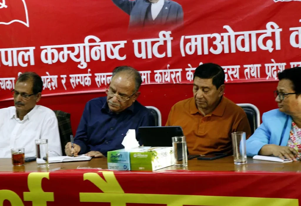 ८ भाद्र, काठमाडौँ ।  नेकपा  कम्युनिष्ट पार्टी (माओवादी केन्द्र) का उपत्यका विशेष प्रदेश र सम्पर्क समन्वय प्रदेशबाट केन्द्रमा प्रतिनिधित्व गर्ने केन्द्रीय सदस्य र प्रदेश पदाधिकारीहरूको परामर्श बैठक पार्टी केन्द्रीय कार्यालय पेरिस डाँडामा जारी छ ।
