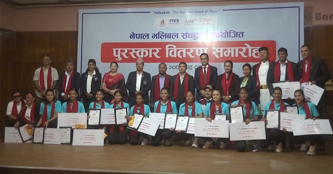 काठमाडौंमा भएको काभा महिला भलिबल नेसन्स लिगको उपविजेता टिमका खेलाडीलाई जनही एक लाख दुई हजार रुपैयाँ प्रदान गरियो । उक्त टिमका मुख्य प्रशिक्षक जगदीशप्रसाद भट्टले पनि एक लाख दुई हजार प्राप्त गरे । सहायक प्रशिक्षक भरत यादवलाई ९२ हजार तथा लोकेन्द्र कुँवर र म्यानेजर निलम बज्राचार्यलाई जनही ८२ हजार रुपैयाँ प्रदान गरियो ।