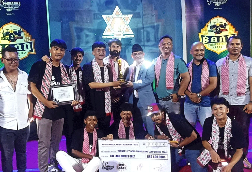 १६ भाद्र, कास्की । पोखरामा आयोजना गरिएको ‘इन्टर स्कुल ब्यान्ड कम्पिटिसन’को उपाधि पोखराको गुरुकुल माध्यमिक विद्यालयले जितेको छ ।