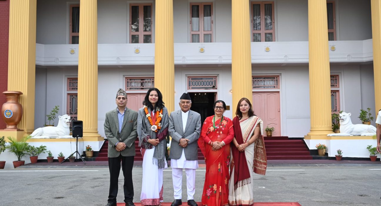 शीतल निवासमा आयोजित एक कार्यक्रमकाबीच पदक विजेता पलेशालाई राष्ट्रपति पौडेल र प्रथम महिला सविता पौडेलले माला र दोसल्ला ओढाएर सम्मान गरेका हुन् ।