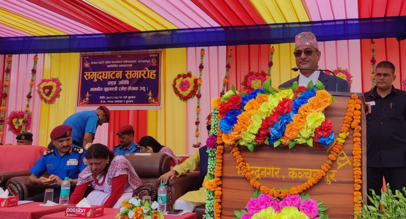 १९ भाद्र, धनगढी ।सरकारको पहिलो प्राथमिकता नागरिकलाई सेवा प्रदान गर्नु रहेको गृहमन्त्री रमेश लेखकले बताएका छन् । कञ्चनपुरको महेन्द्रनगरस्थित नेपाल प्रहरी प्रदेश कार्यालयको नवनिर्मित भवनको उद्घाटन समारोहमा आज(बुधवार) लेखकले प्रहरीको सुविधासम्पन्न भवन निर्माणले नागरिकलाई सेवा प्रदान सहज हुने बताए ।