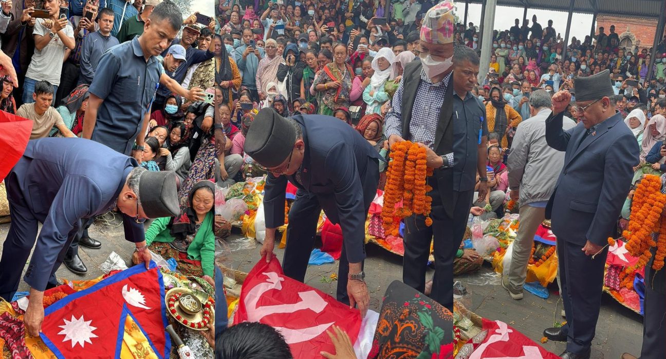 १ असोज, काठमाडौं । रुकुमपूर्वको पुथा उत्तरगंगा गाउँपालिकाका उपाध्यक्ष भुपेन्द्र बुढाको पशुपति आर्यघाटमा अन्त्येष्टि गरिएको छ ।पूर्वप्रधानमन्त्री एवं नेकपा माओवादी केन्द्रका अध्यक्ष पुष्पकमल दाहाल प्रचण्डले राष्ट्रिय र पार्टीको झण्डा ओढाएर अन्तिम श्रद्धाञ्जली दिए ।